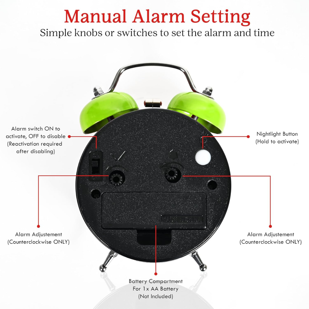 Fun and Playful Emoji Design: Add some personality to your room with this Emoji Design Retro Twin Bell Alarm Clock! Featuring a vibrant, cheerful emoji face, this clock is perfect for adding a fun touch to any bedroom, dorm room, or kids' room.